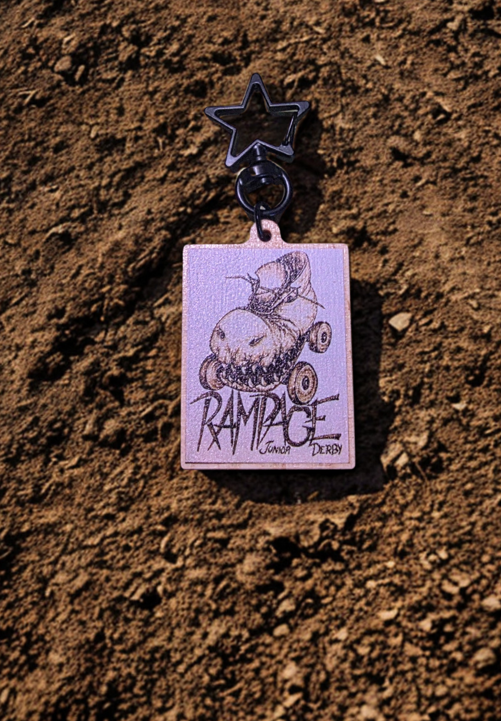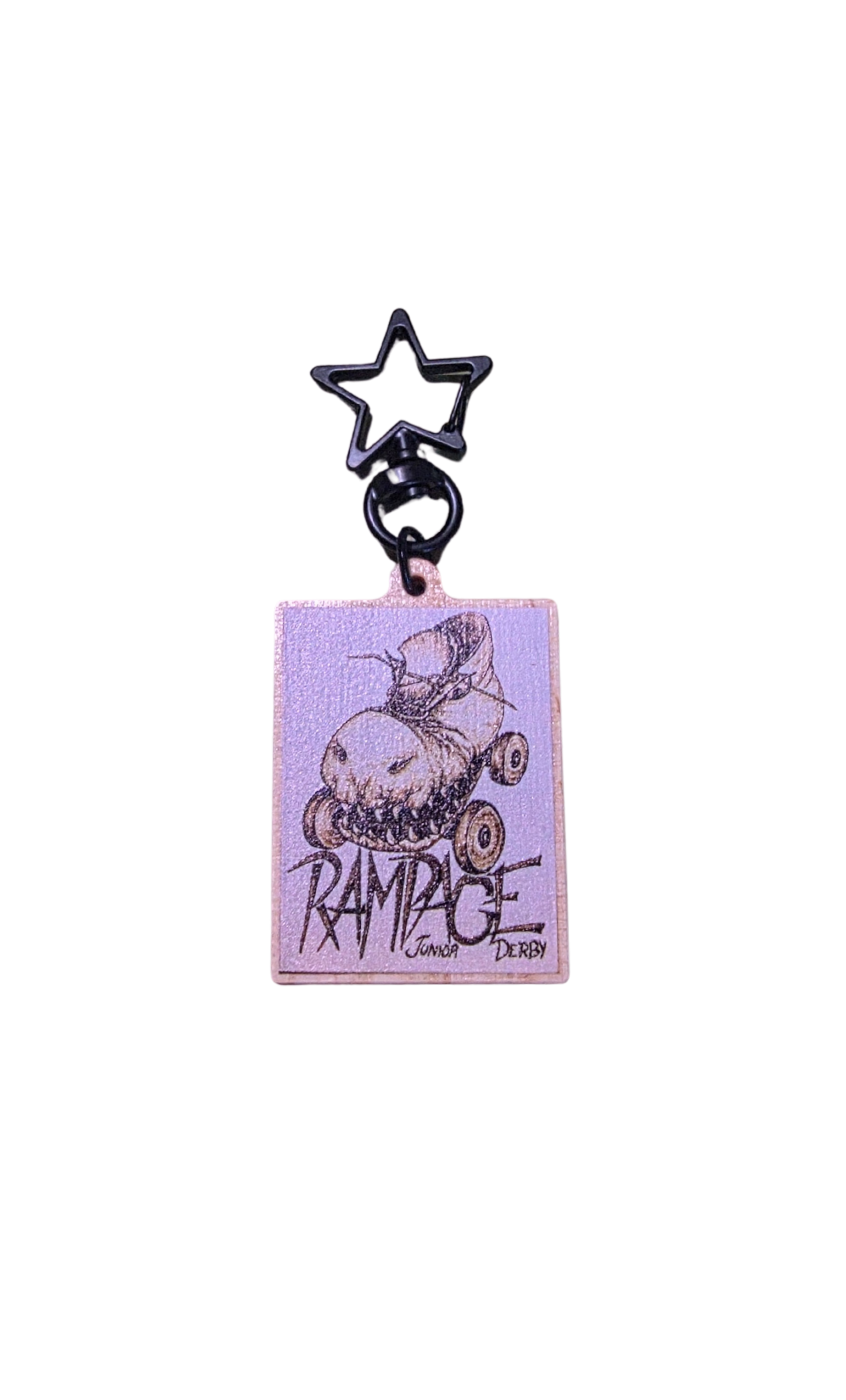 This 2-inch wooden keychain features a durable black star-shaped metal clasp, combining functionality with a sleek design.